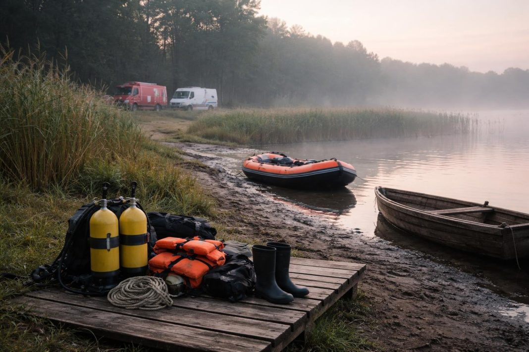 Căutările au continuat pe tot parcursul zilei, dar condițiile zonei și adâncimea luciului au îngreunat operațiunile de căutare.